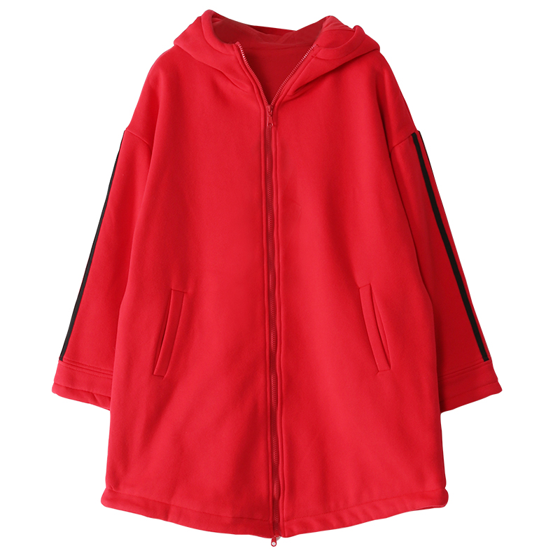 Real Madrid Winter new pure cotton plus suede thickened jacket loose with cap medium long version of cardiovert cotton T female striped cotton clothing