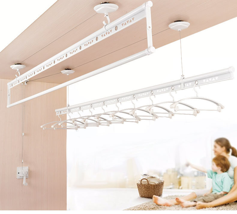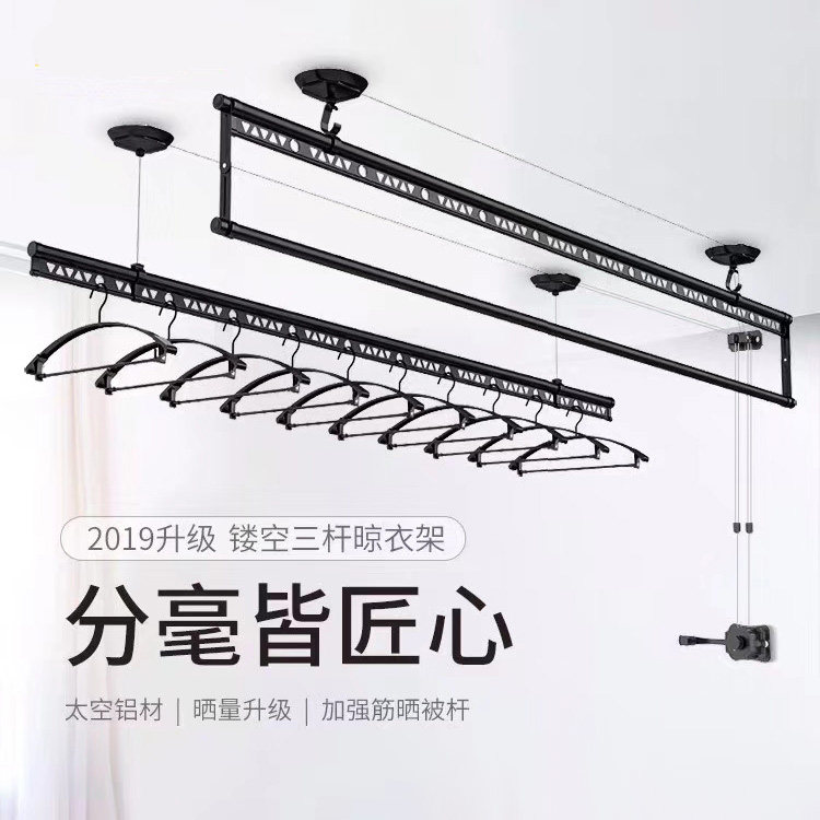 Balcony lifting clothes rack black and white hand-cranked clothes rack double pole three pole type drying quilt indoor cool clothes Changsha installation