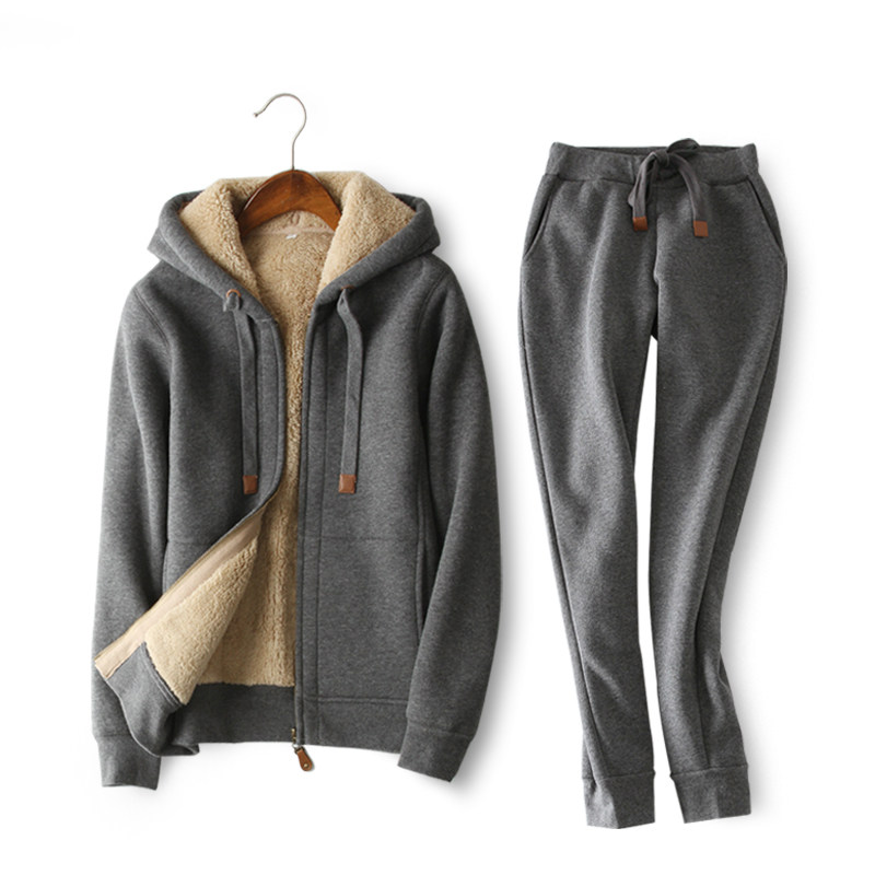 Sweater suit men's 2021 autumn and winter new gush thickened large size for casual even cap lamb two sets of sportswear