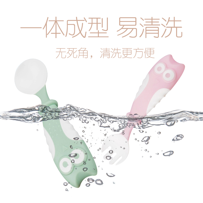 Small Potatoes Baby Elbow Spoon Baby School Eating Training Spoon Child Spoon Fork Suit Bicolor 2 Support