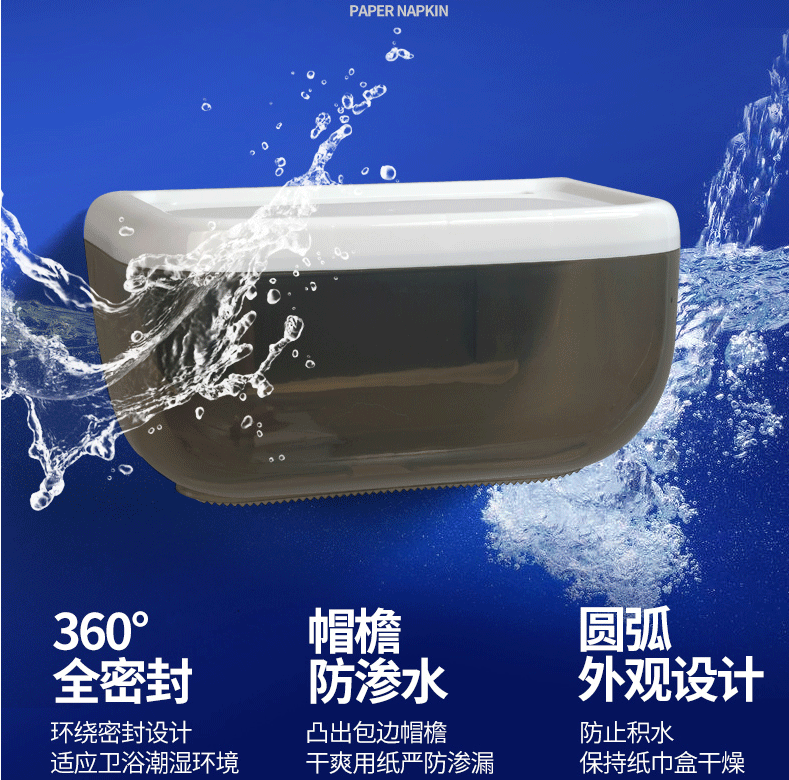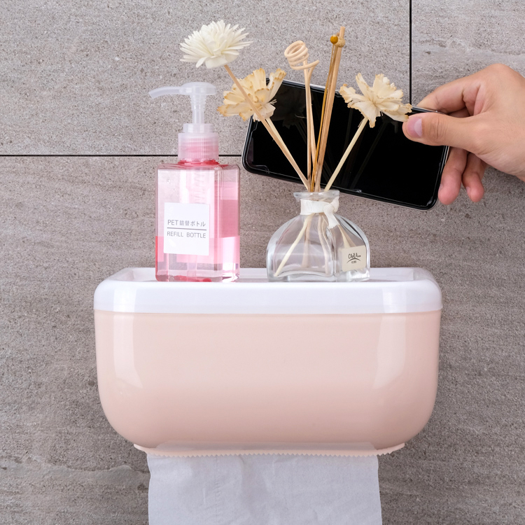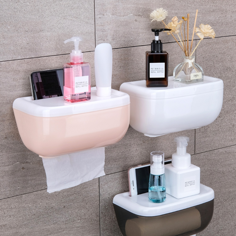 Tissue box Powder room waterproof toilet paper box Wall-mounted tissue holder Hole-free toilet paper box Toilet paper roll toilet paper holder
