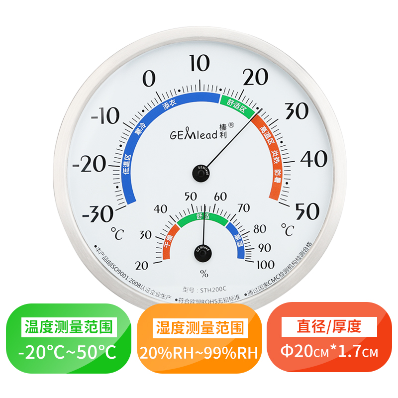Hazelly STH200C Indoor Thermometer Hygrometer diameter 20CM Living room Office Domestic temperature and humidity meter