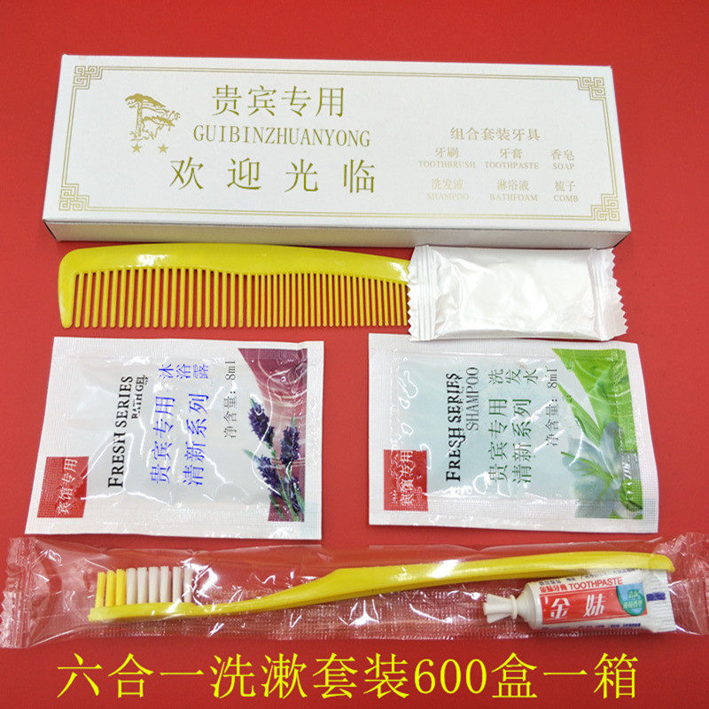 Disposable six sets of teeth washing supplies Six small pieces Six-in-one toothbrush toothpaste wash body soap 600 boxes