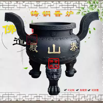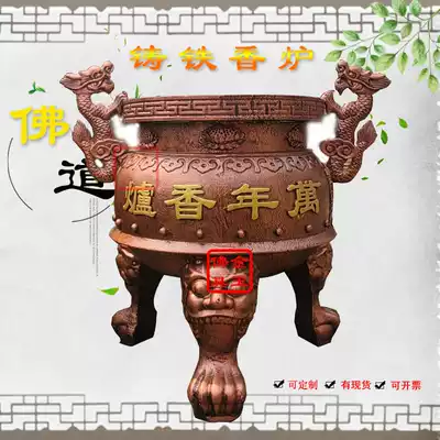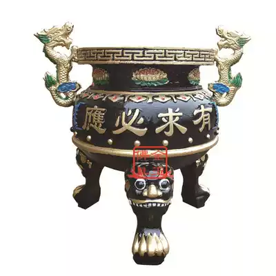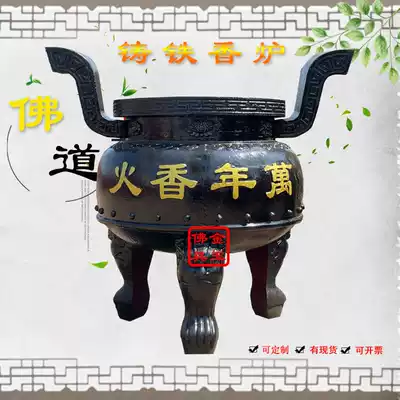 Temple round flat mouth large incense burner stove cast iron paper round incense burner outdoor pig iron incense burner on ancestral hall incense burner