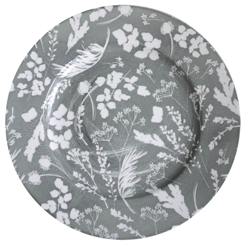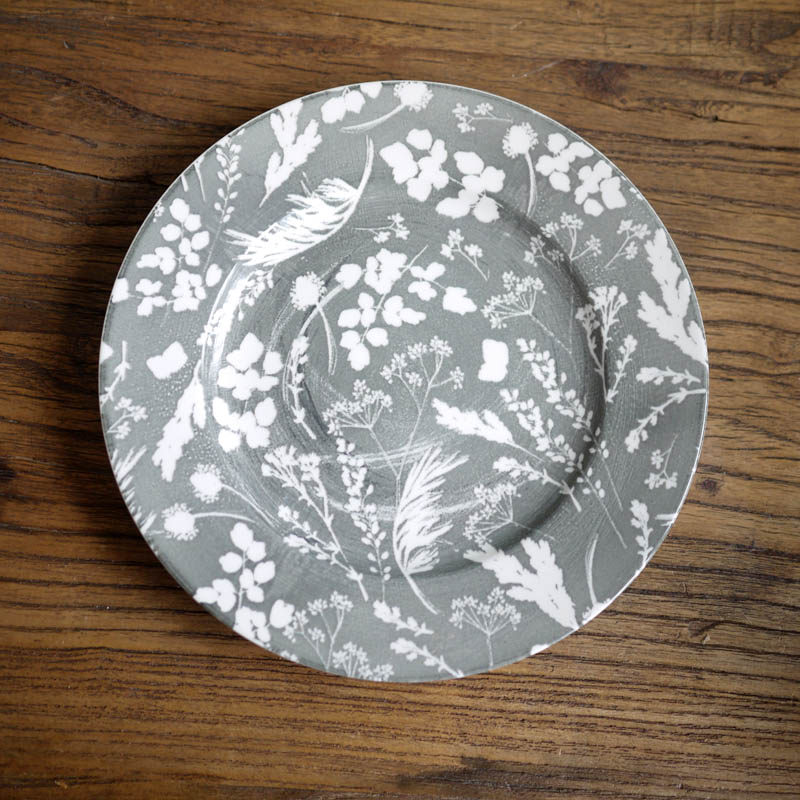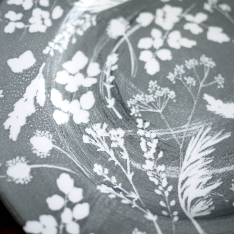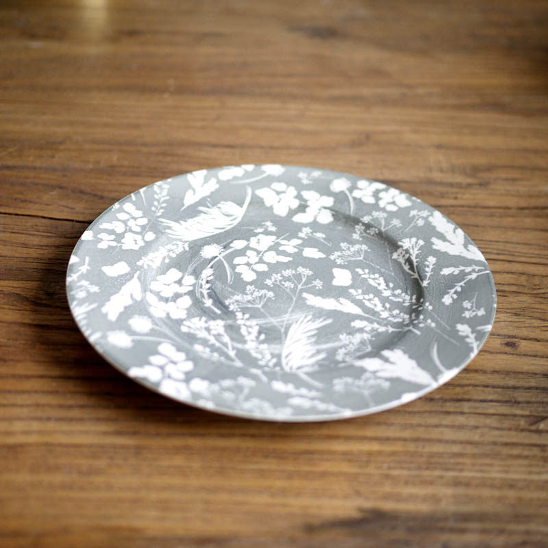 W1962 Exported to the UK Gray Graffiti Effect Dark Pattern Flower and Bird 8-inch Plate Retro Style Dinner Plate