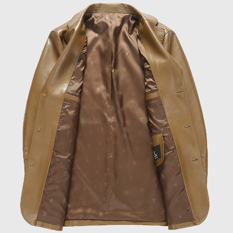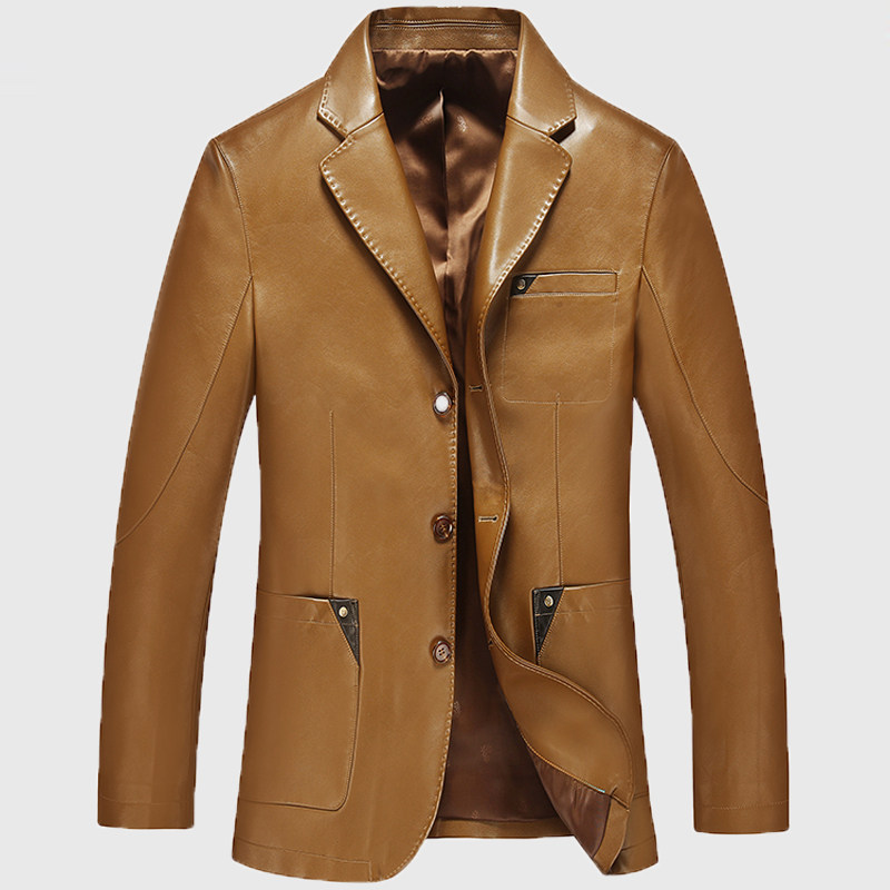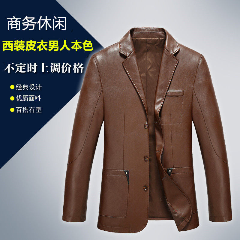 Spring and autumn new leather leather men's middle-aged jacket lapel leather suit men's slim leather suit middle-aged leather jacket