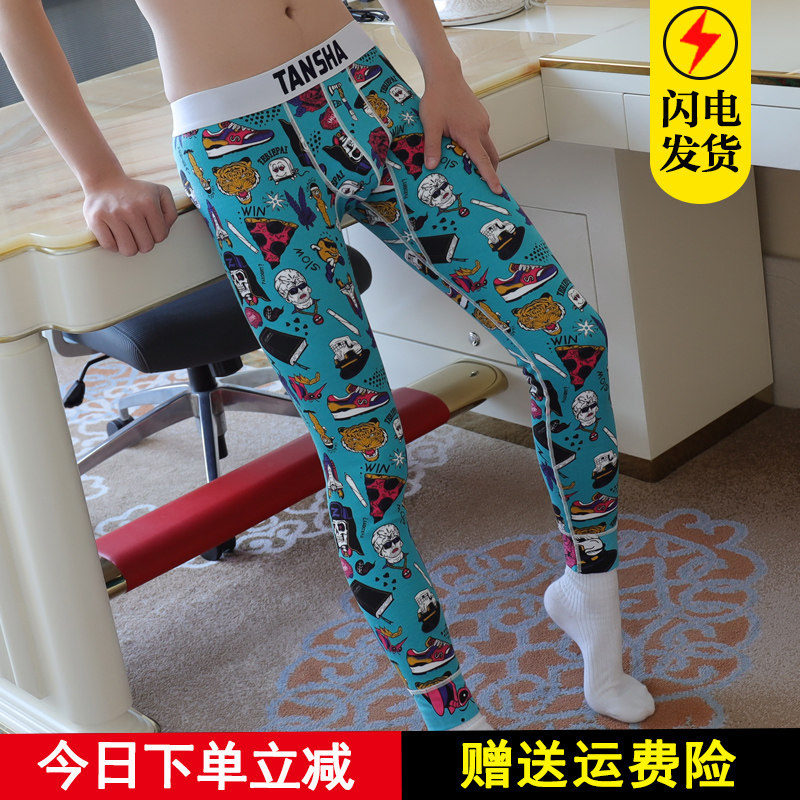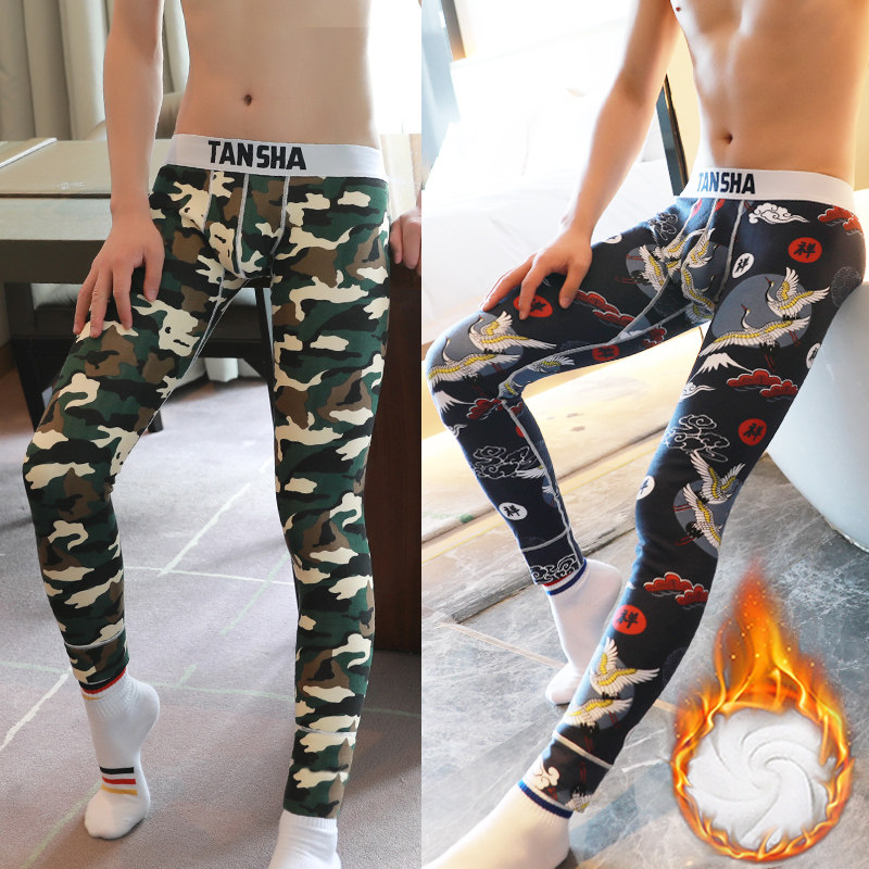 Men's autumn pants men's warm pants cotton thin winter plus velvet padded bottom line pants tight cotton pants trend wool pants