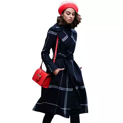 Glamour suit collar plaid woolen coat women's autumn and winter New waist slim medium and long version of European and American style woolen coat