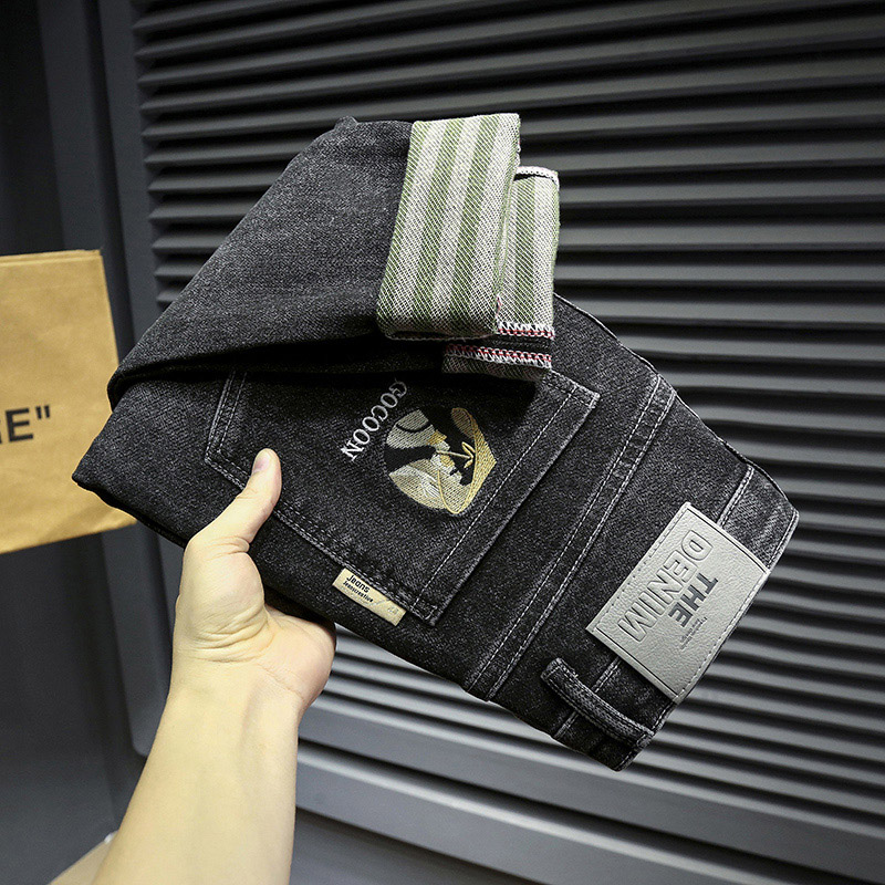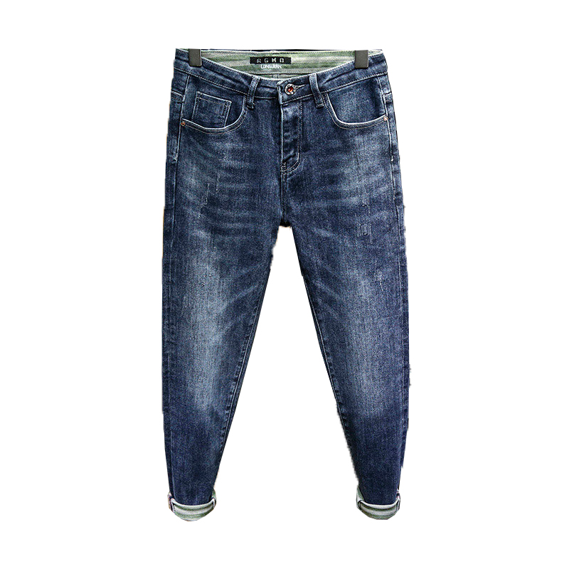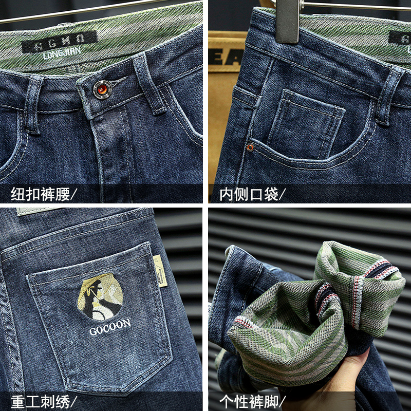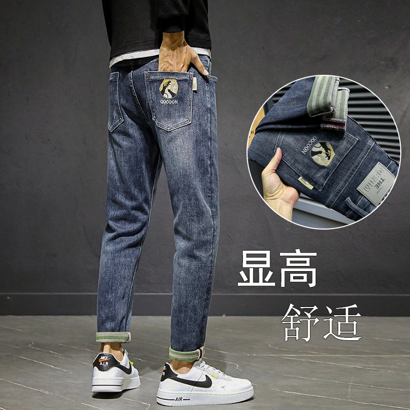 Autumn and winter thick section 2021 men's jeans slim small feet Korean version of the elastic trend new trendy brand spring and autumn pants