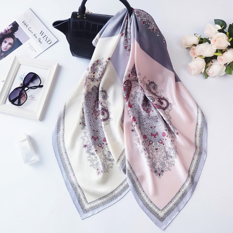 French high-grade satin silk scarf Large towel 110 printing 100% Mulberry silk scarf Hangzhou silk shawl