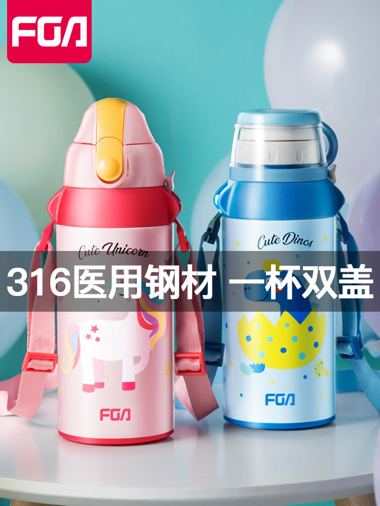 Fuguang Children's insulated cup men and women portable with straw 316 stainless steel water mug students large capacity insulated cups