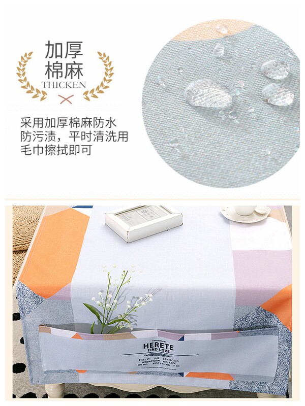 Net red ins wind tea table cloth waterproof and anti-burn cotton hemp cloth art rectangular table cushion small tea table cloth Nordic