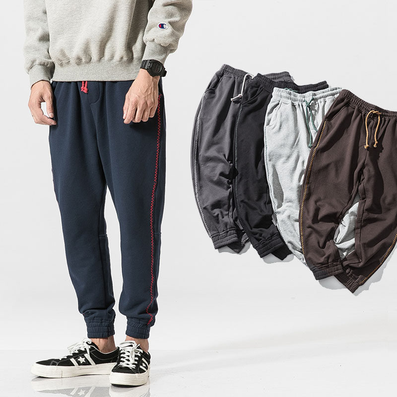 "Corrugated" Korean version Leisure Cham Men's sewing harness foot Harun long pants Japanese Antique Teens EASY AUTUMN
