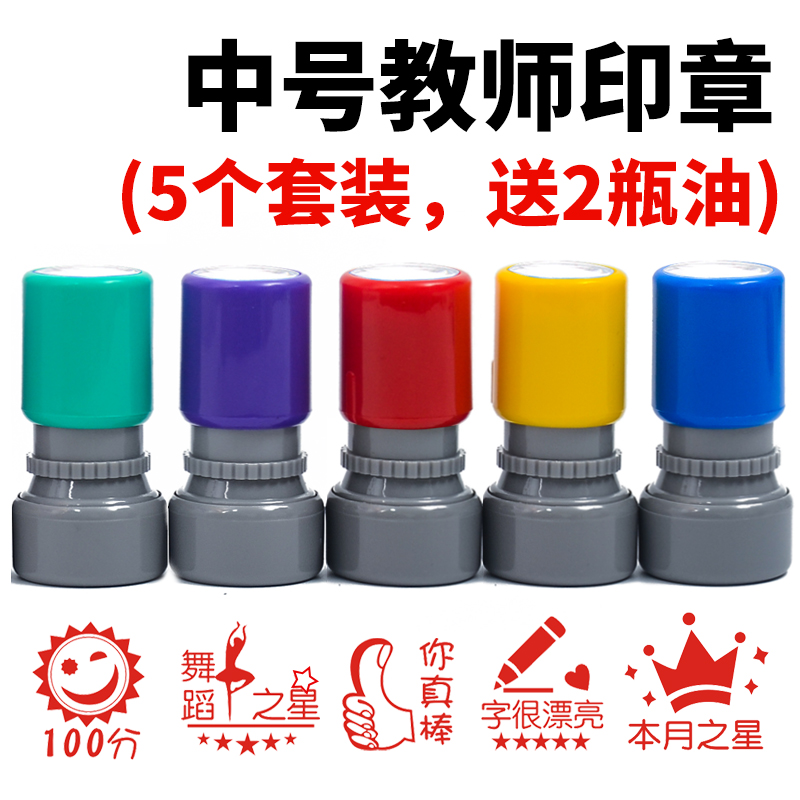 Teacher's seal Photosensitive teaching reward seal Encourage cartoon primary school student children's seal Teacher comment set