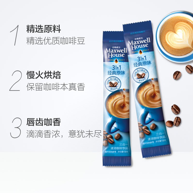 Maxwell coffee instant three-in-one 100 bars 50 bars 60 bars Refreshing coffee powder Special flavor mellow original flavor