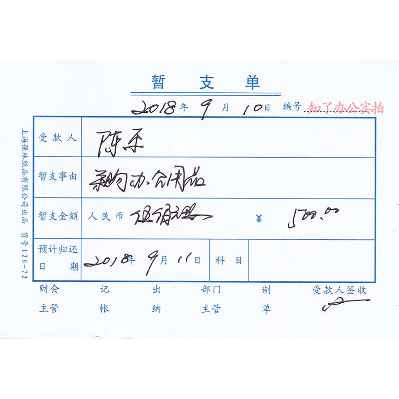 Provisional List 72 Common Salary Advance Statement Fees Temporary Accounting Document Strong Lin Paper 126-72