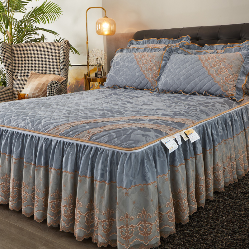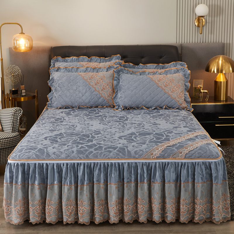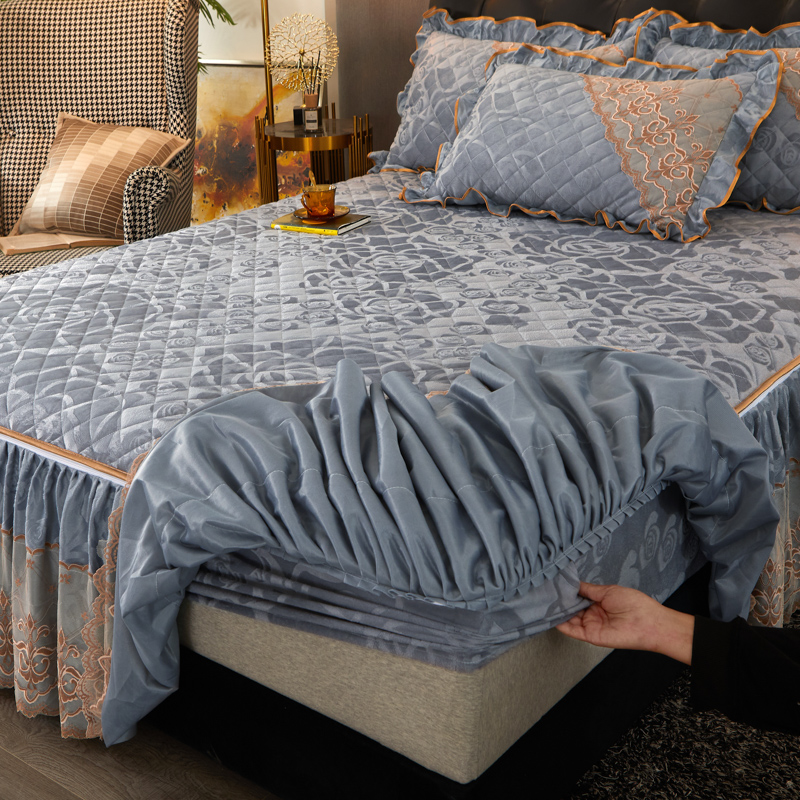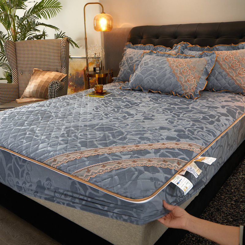 European-style crystal velvet thickened lace bed skirt single-piece thermal bed cover Simmons mattress cover quilted bed cover 1 8 2