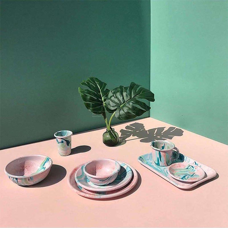 Spot EDITOR01 Turkish BORNN Marble blush pink series enamel dinner plate Mark cutlery