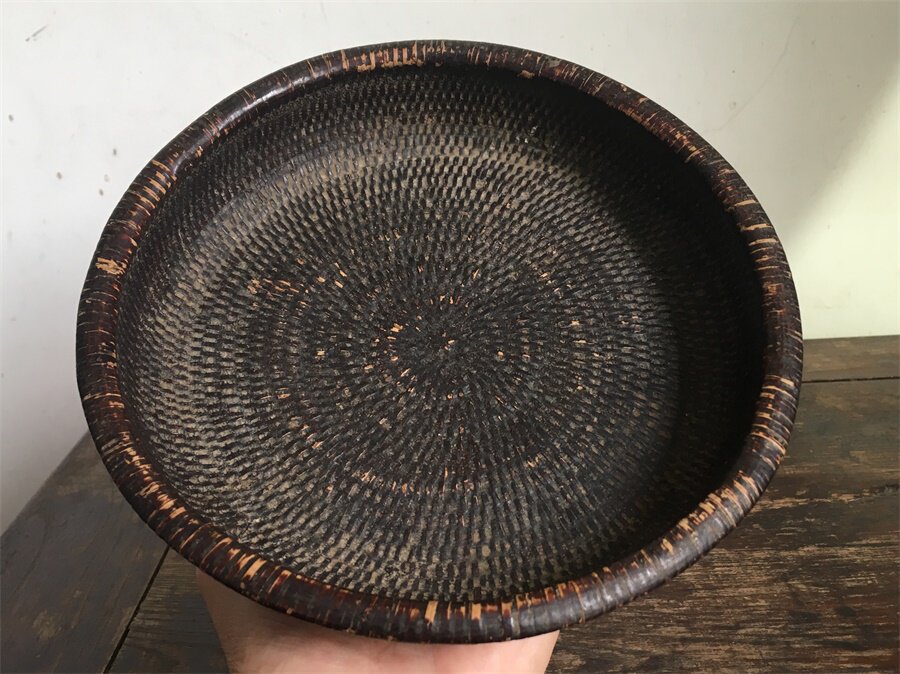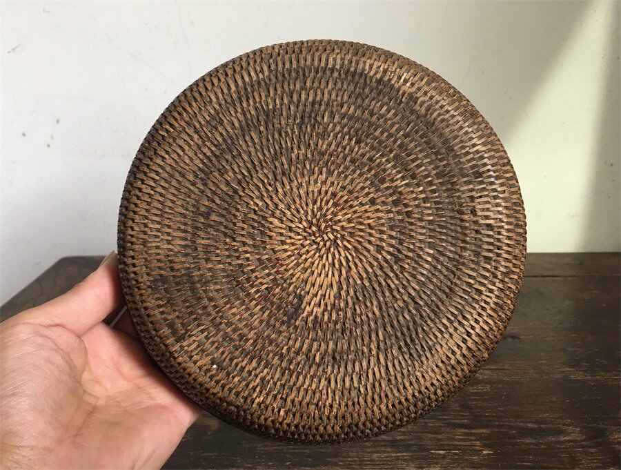 Original flavor old pulp Qing Dynasty Sugong old rattan weaving old lacquer incense plate text plate exquisite nostalgic old objects antique miscellaneous