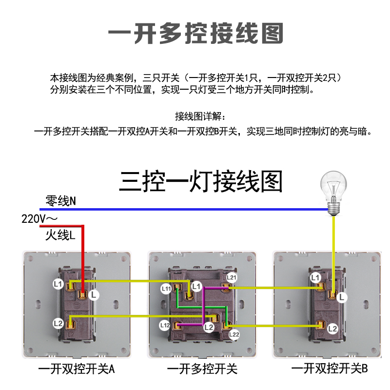 International electrician type 86 switch socket panel household single open one open multi-control switch halfway a lamp three-control switch
