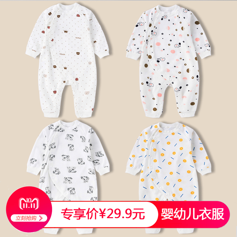Baby winter clothes Newborn toddler clothes Pajamas Men and women newborn 0-3 baby June spring and autumn jumpsuit oblique placket
