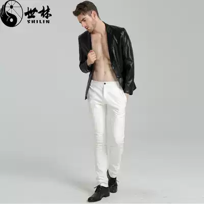 Autumn and winter New tight leather pants men slim feet Korean locomotive large size waterproof men plus velvet PU trousers