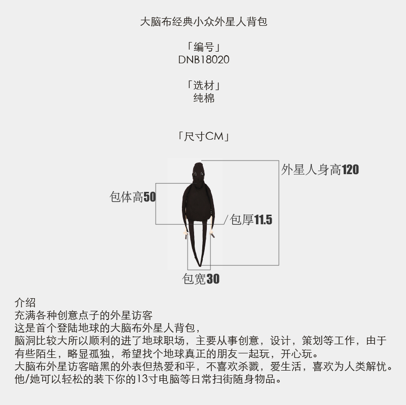Brain Cloth Original Alien Backpack Casual Canvas Bag Niche Design Boys and Girls Two-dimensional Dark Trend