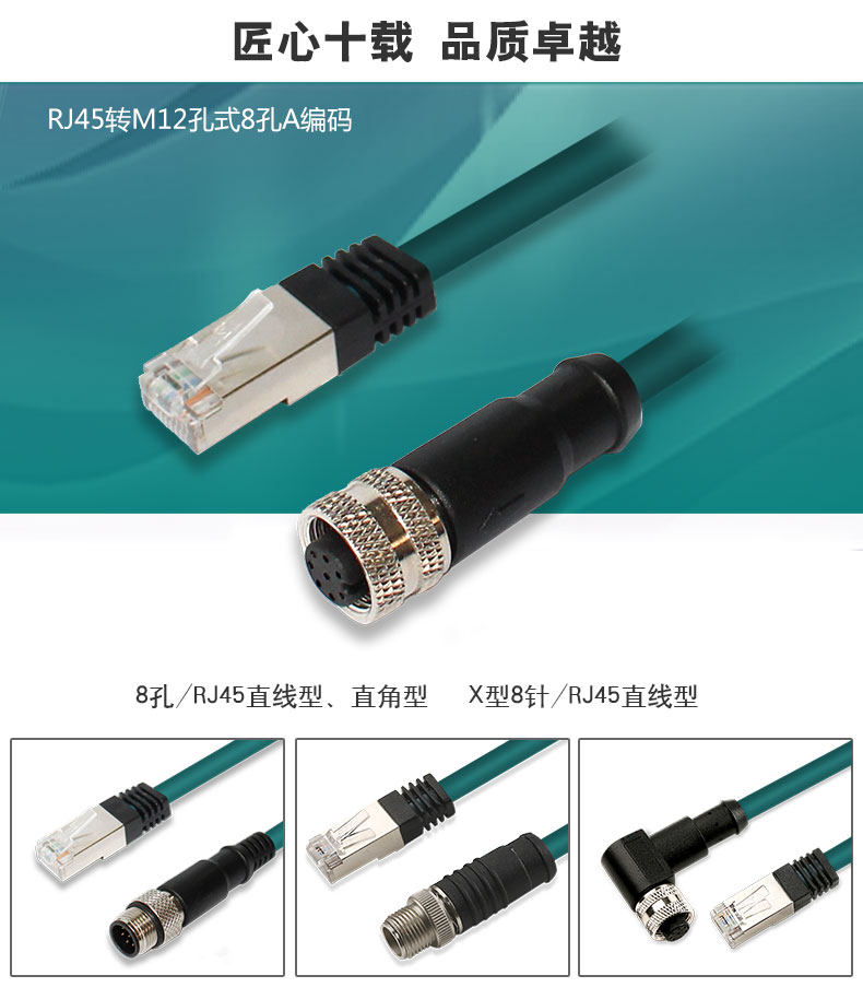 Ethernet cable M12 to RJ45 hole type 8-pin A-coded female head compatible with Cognex Cognex and other industrial cameras