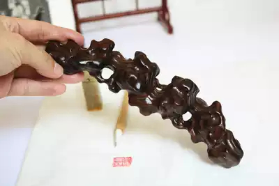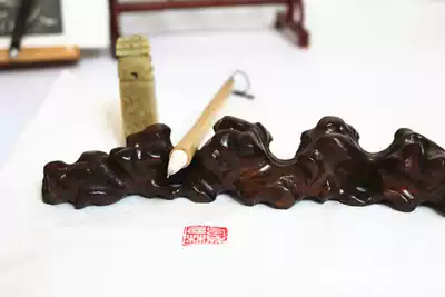 Large pen mountain mahogany brush holder pen holder black Catalpa root carving brush calligraphy four treasures