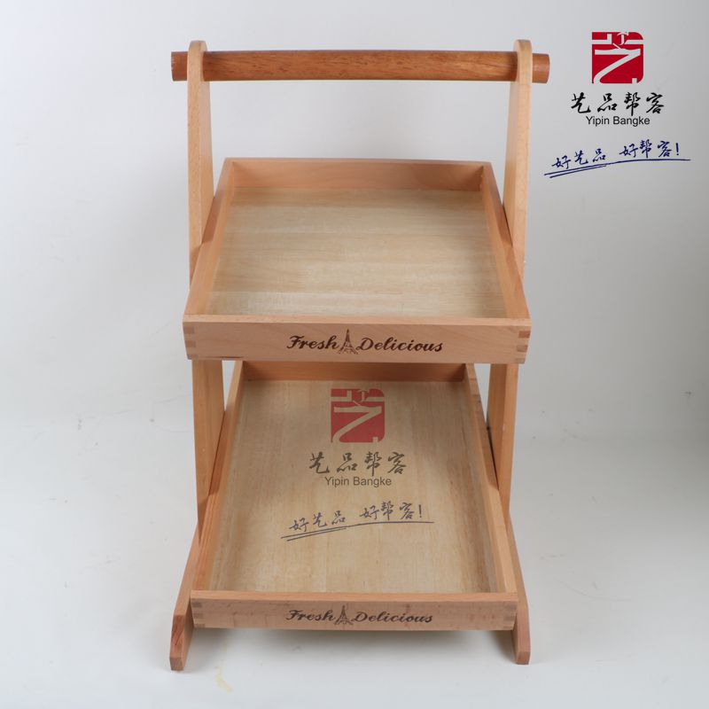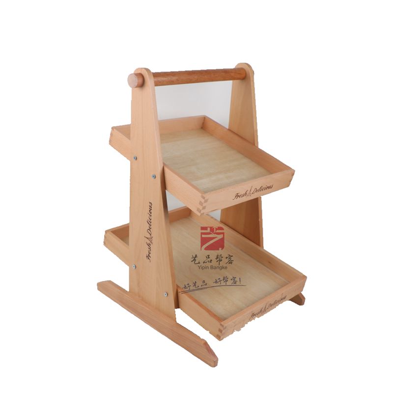 Art helper bread rack baking soft flat display rack solid wood iron double bakery cake decoration