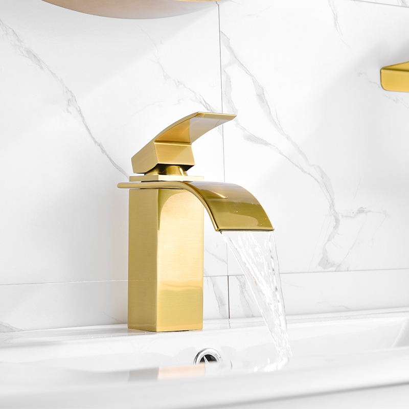 German full copper wire drawing gold hot and cold face basin tap Single-hole table pelvic floor pelvic floor Nordic waterfall tap