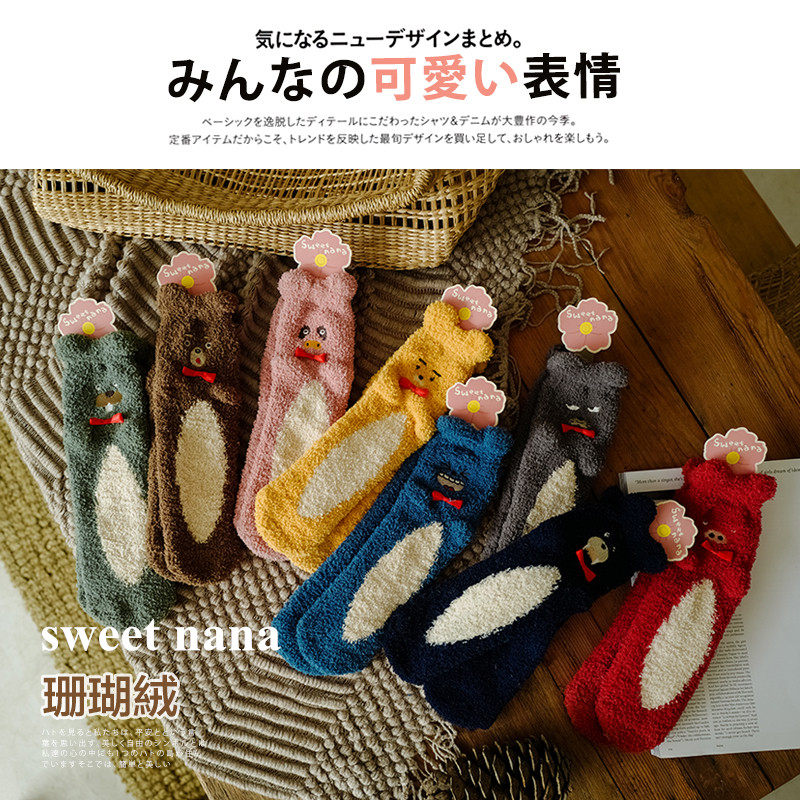Day Series New Cute Embroidered Flowers Soft Cute Cartoon Parenting Socks Solid Butterfly Knot Warm Floor Home Socks