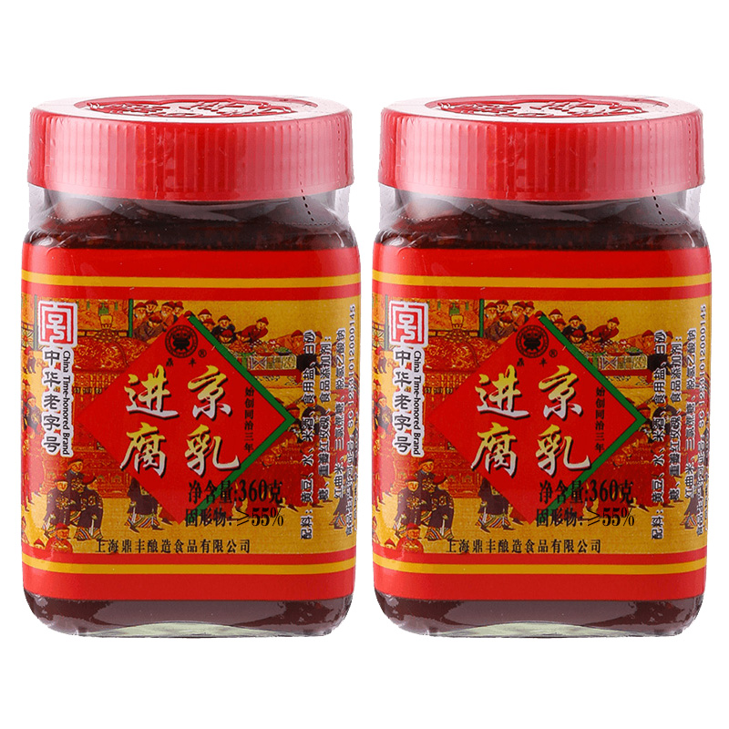 Dingfeng Jinjing Fermented Bean Curd Shanghai specialty Rose Fermented Bean Curd 360gx2 bottles Red Fermented Bean curd Mold tofu milk Red Square Fermented bean curd