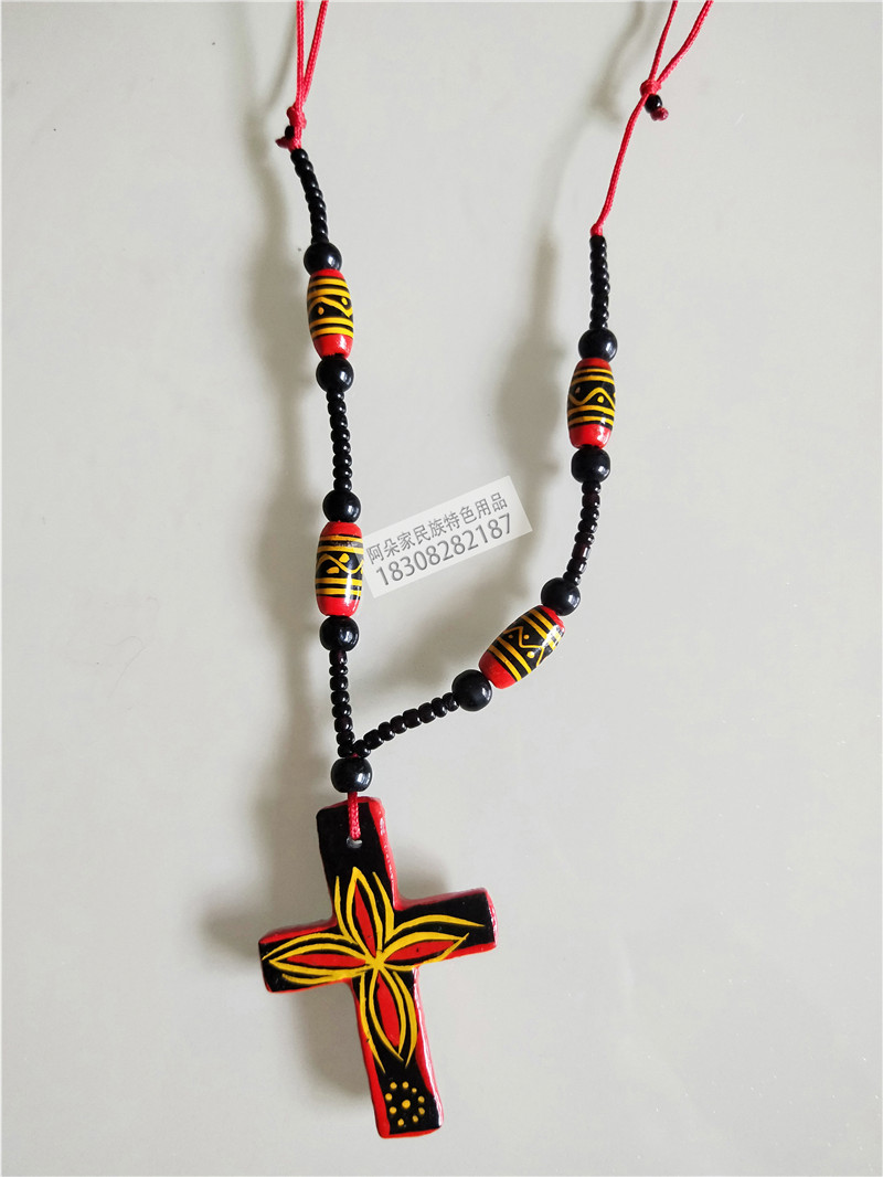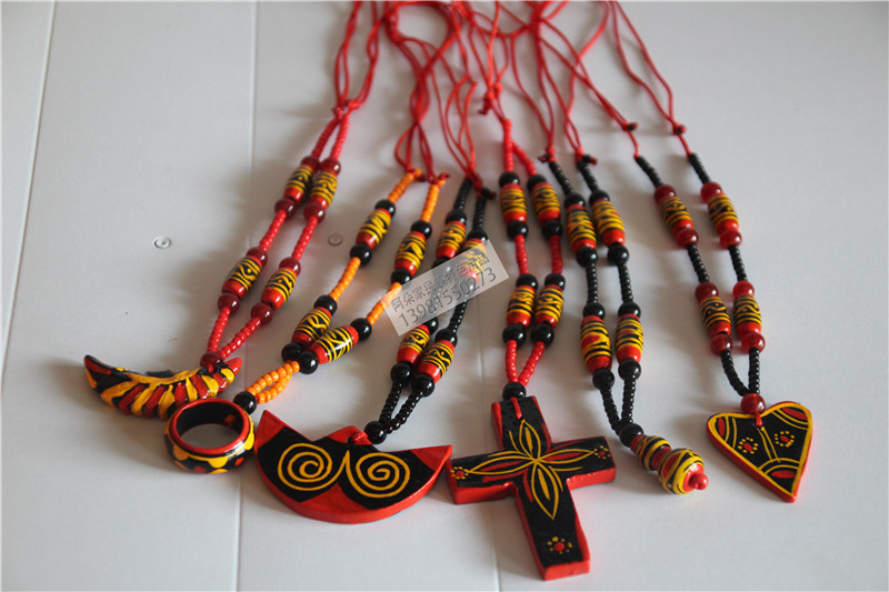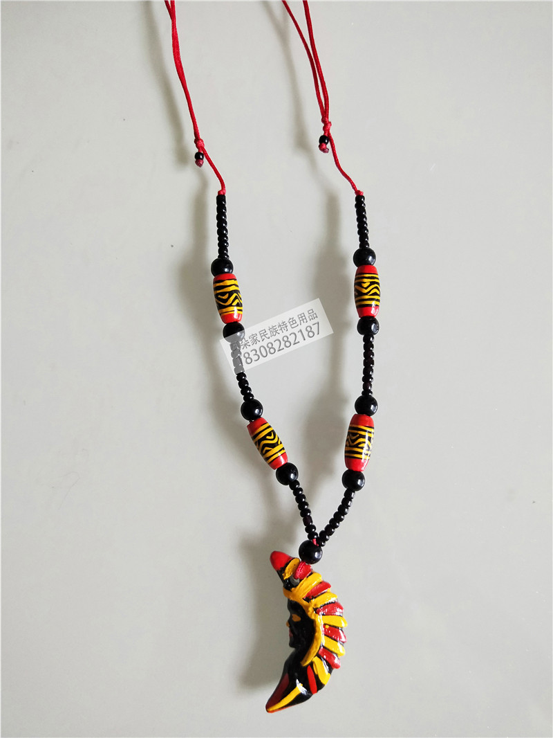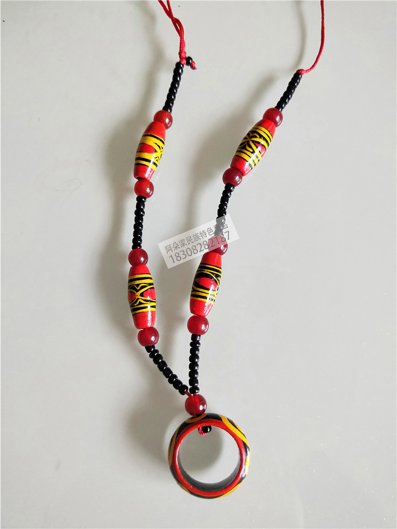 Daliang Mountain Yi ethnic necklace Gourd pendant Men's lacquerware red, yellow and black beads ornament Ethnic jewelry