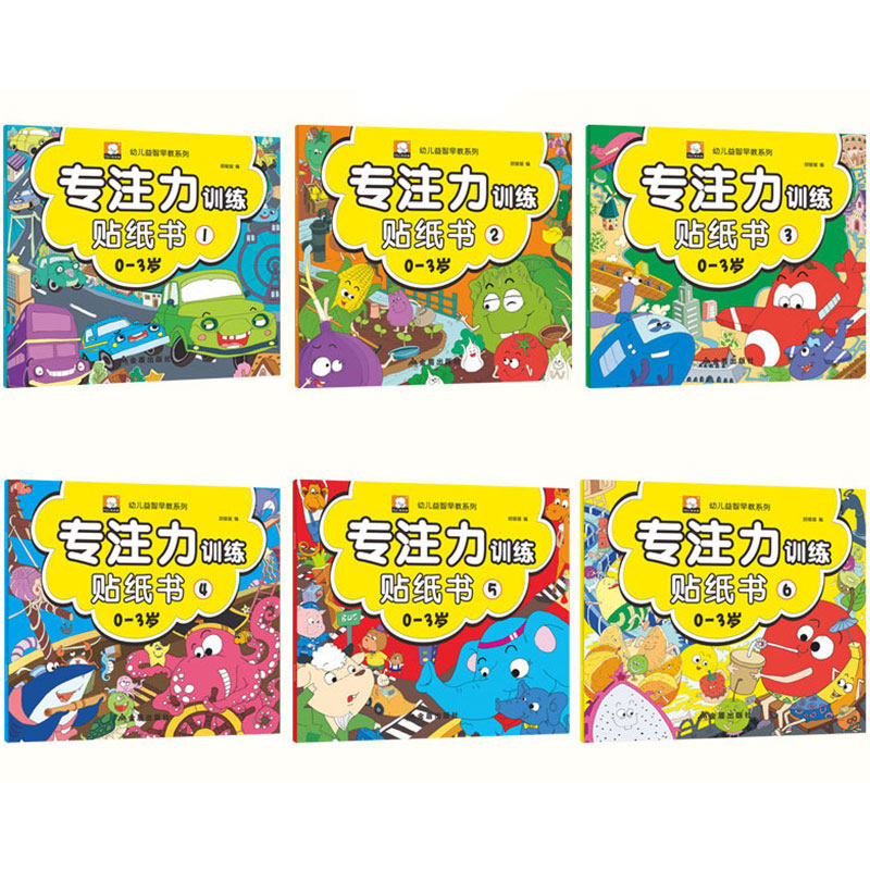 0-3-year-old special training sticker book full set of 6 books Early childhood teaching Enlightenment baby books 1-2-4-three-week-old infants puzzle left and right brain development children happy stickers book Sticky and sticky