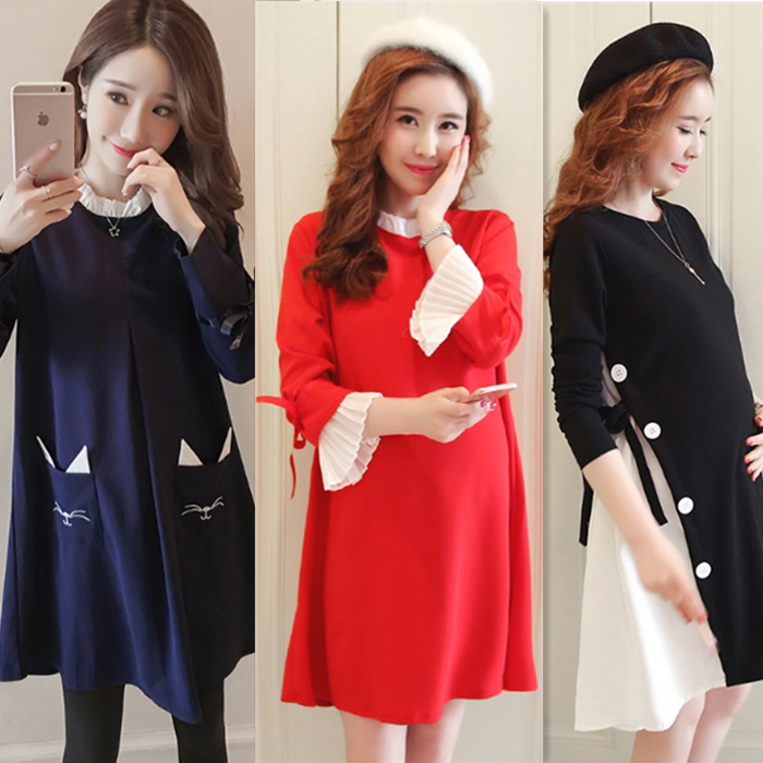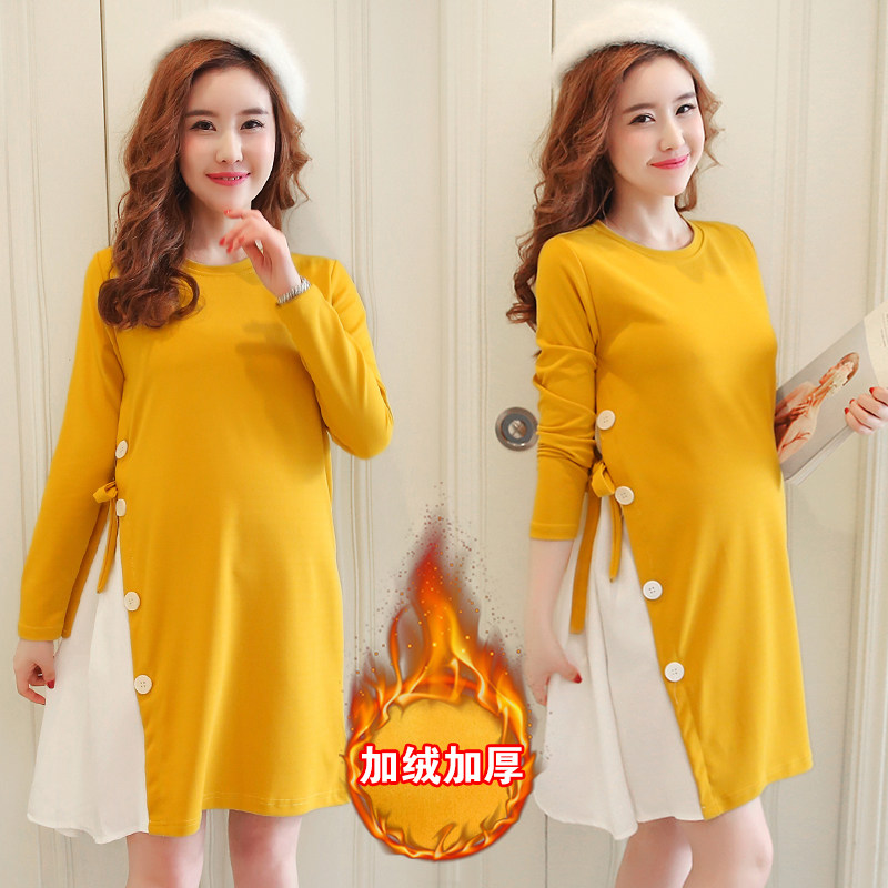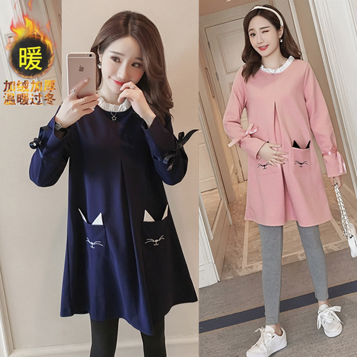 Large size for pregnant woman autumn and winter suit fashion 2020 new Korean version plus velvety necropolis dress with two sets
