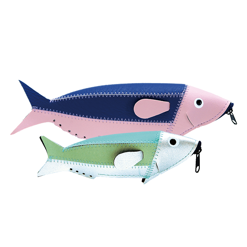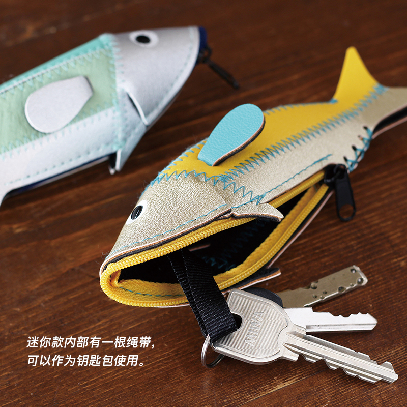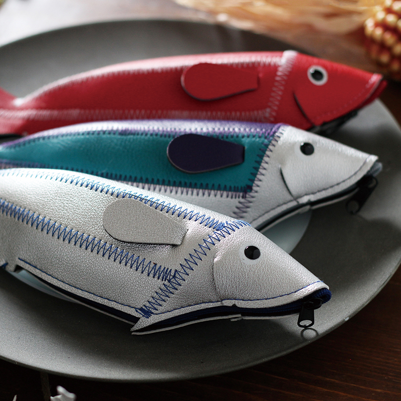 Japan MATOKA PU leather handmade fish shaped pen bag glasses zero money electronic product portable mini containing bag