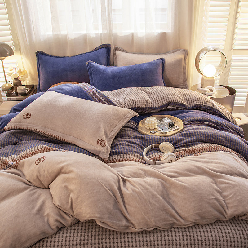 Four-piece winter coral fleece milk flannel double-sided fleece crystal fleece new cotton wool padded quilt cover sheet 4