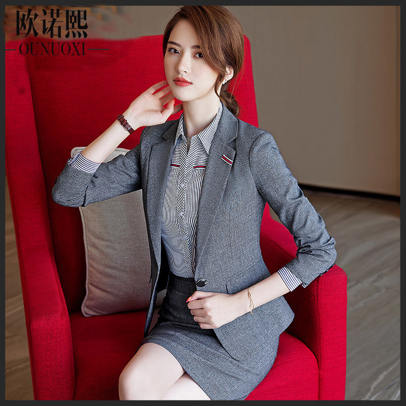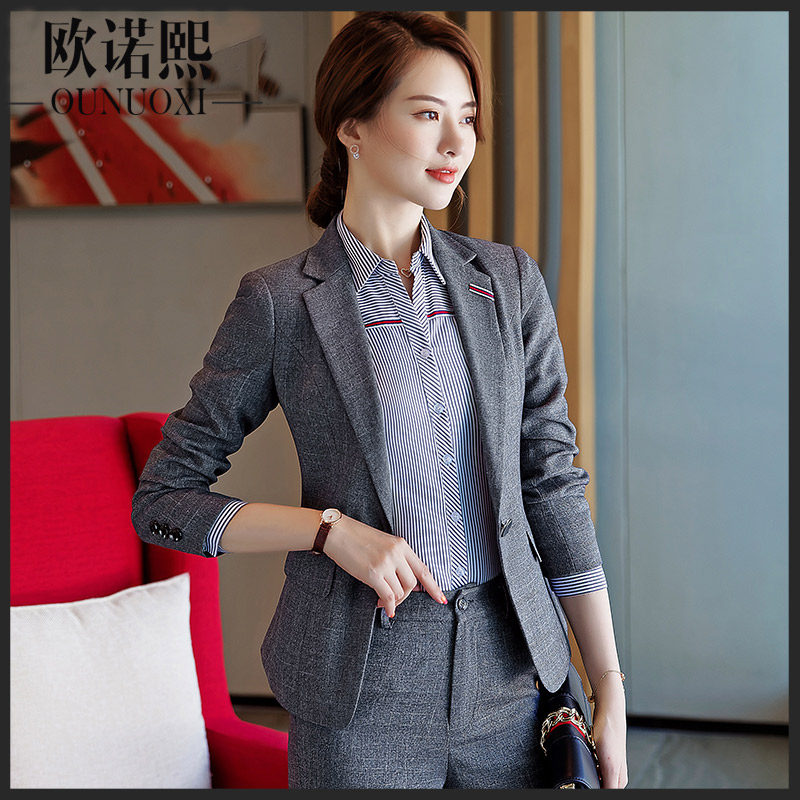 Gray coat C028 dark gray grid nine points pipe pants gray coat N088 dark gray grid skirt gray coat C028 dark gray grid nine points pipe pants B151 white striped long sleeve