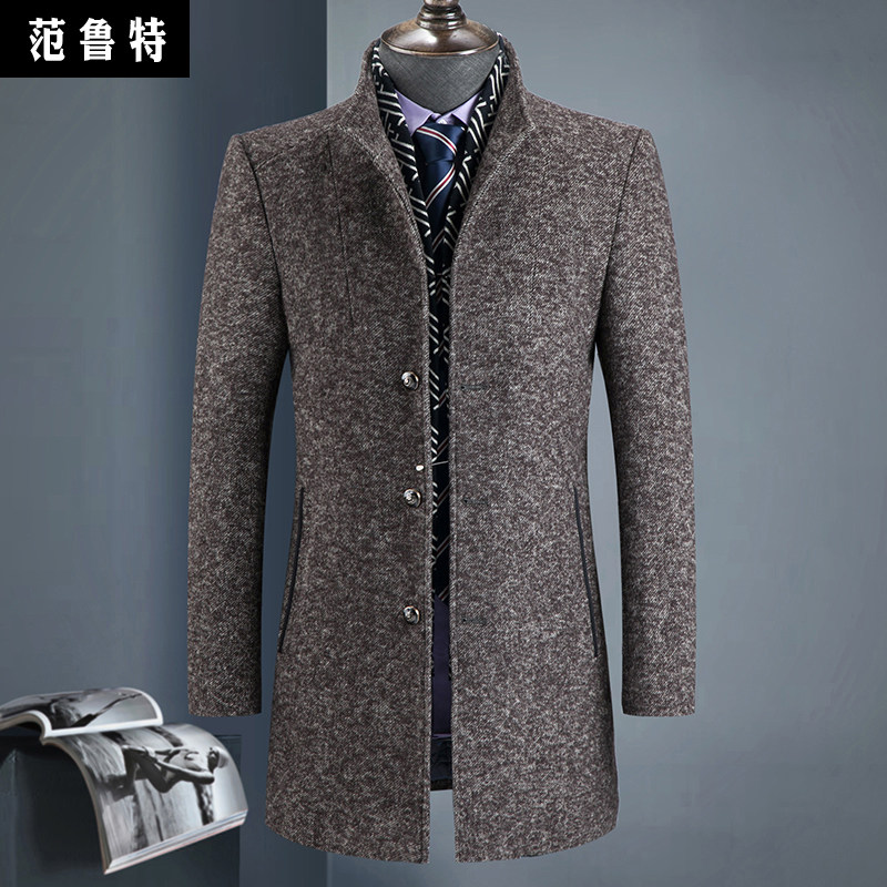 Winter thickened wool men in the middle of the long version of the big coat in the middle ages, and the plush mansuede jacket big coat man.