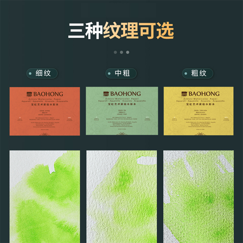 Baohong artist grade cotton pulp Watercolor four-sided sealing glue 32k 16K 8K fine grain medium coarse coarse grain 300g Watercolor professional sketching travel painting watercolor paper