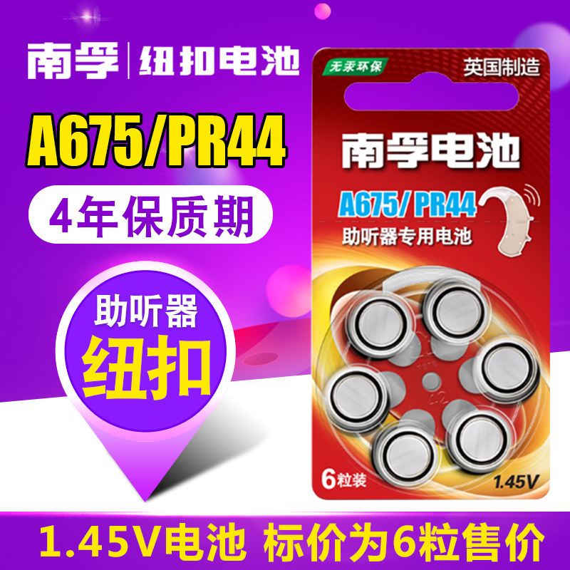 Nanfu hearing aid battery A675 pr44 e675 p675 back-of-ear button electronic 1.45v suitable for Siemens Lingyue sp first bully Bucks V-189 Baoertong F-138 universal LR44