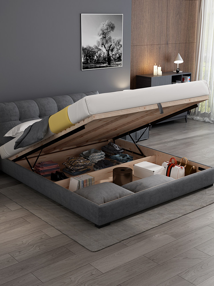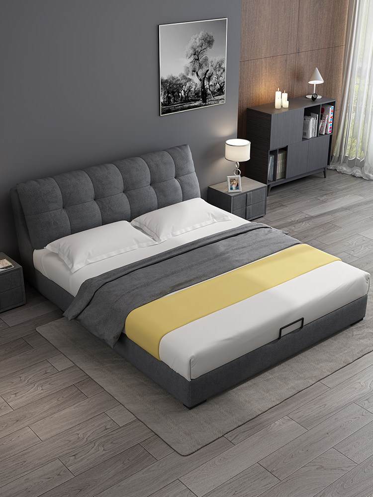 Nordic fabric bed small apartment modern 18 meters simple double bed bedroom detachable and washable girl light luxury bed master bedroom