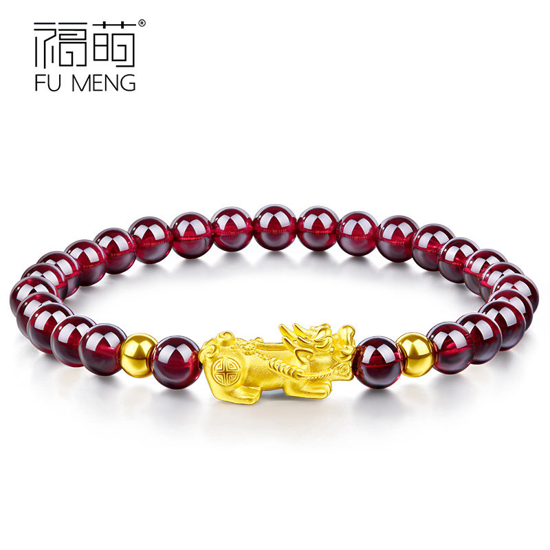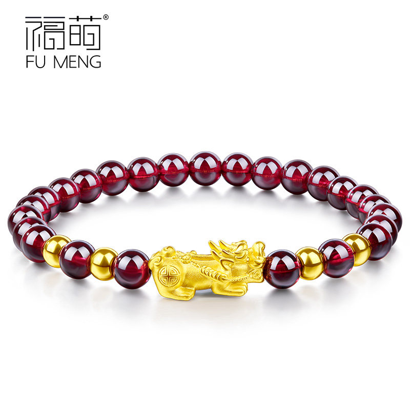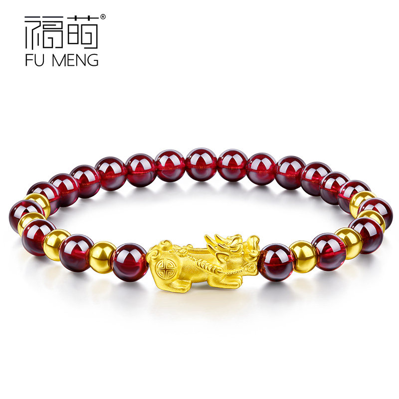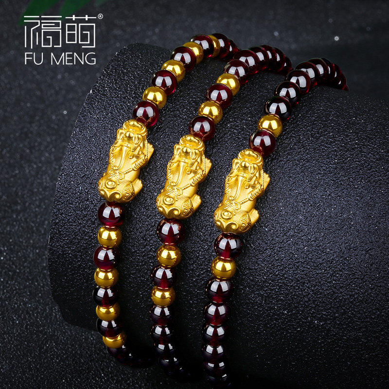 Focute pomegranate stone with gold handout 999 foot gold leopard Hand Strings Women's Gold Pearl Transit Beads Valentine's Day Gift