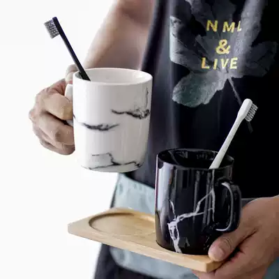 Ceramic marbled toothbrush cup set English alphabet mouthwash cup couple household washing cup set
