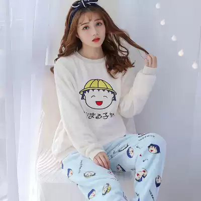 Autumn and winter Korean cute cartoon can be worn outside coral velvet pajamas female thick student flannel home suit suit