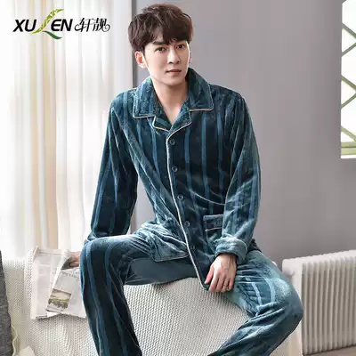 Pajamas men's autumn and winter long sleeve coral velvet thickened plus velvet warm flannel large size Korean home clothing set