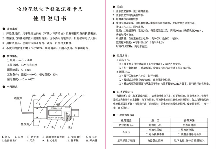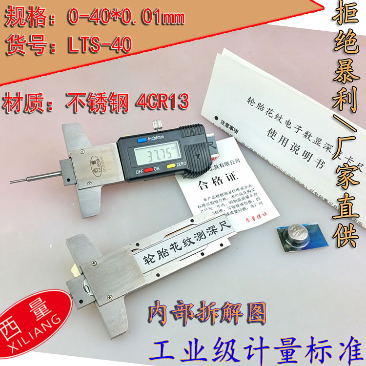 Guanglu model digital display tire depth ruler 0-40mm pattern ruler stainless steel depth electronic measurement car tire detection