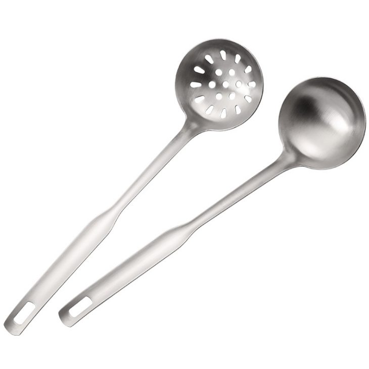 304 Stainless Steel Soup Spoon Leaking Spoon Thickened Hot Pot Spoon Leaking Spoon Suit Big Soup Crust Long Handle Sheng Porridge Spoon Kitchenware Home