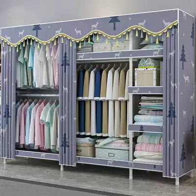 Common clothes cabinet steel frame thickened reinforced thickened assembly double simple fabric rental wardrobe Household economical wardrobe